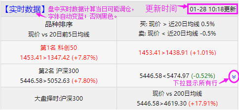 系统设计之初T日交易策略仅有收盘版,同时根据策略逻辑在盘中提供了策略实时数据,临近收盘时可以根据实时数据做预判操作。