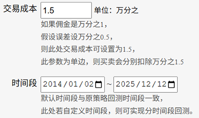 2025.12月系统升级新增了交易成本计算器功能(策略页面 - 策略收益统计 - 交易成本计算器),支持自定义佣金和误差测试,同时还支持了自定义时间段测试。