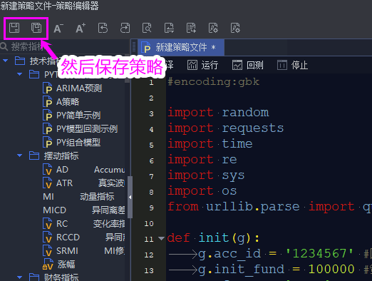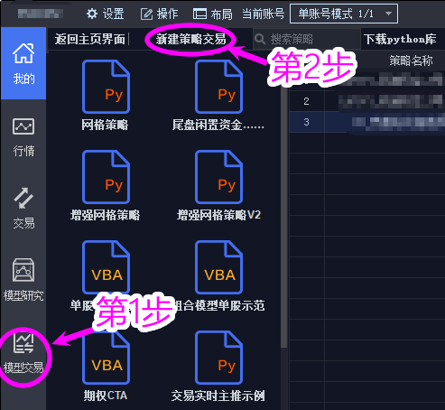 1、在电脑上登录迅投QMT,新建一个python策略: