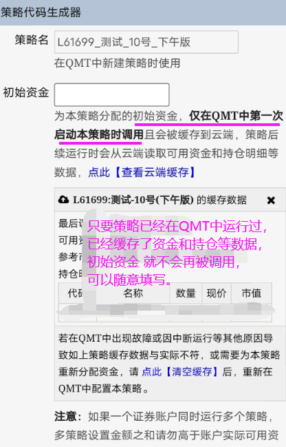 10、已经运行过的策略,重新生成代码时,初始资金怎么填?