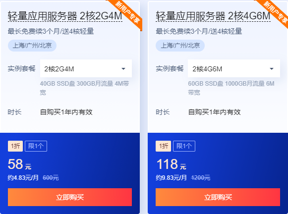 目前可以部署迅投QMT的云产品主要有:云服务器、轻量应用服务器、Flexus云服务器,因为不需要使用服务器集群等复杂功能,所以购买价格便宜的轻量应用服务器、Flexus L实例即可,如下两个配置均可流畅运行迅投QMT:
