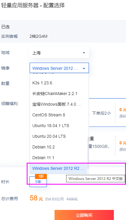 购买时注意必须选择Window镜像,QMT仅支持Windows系统: